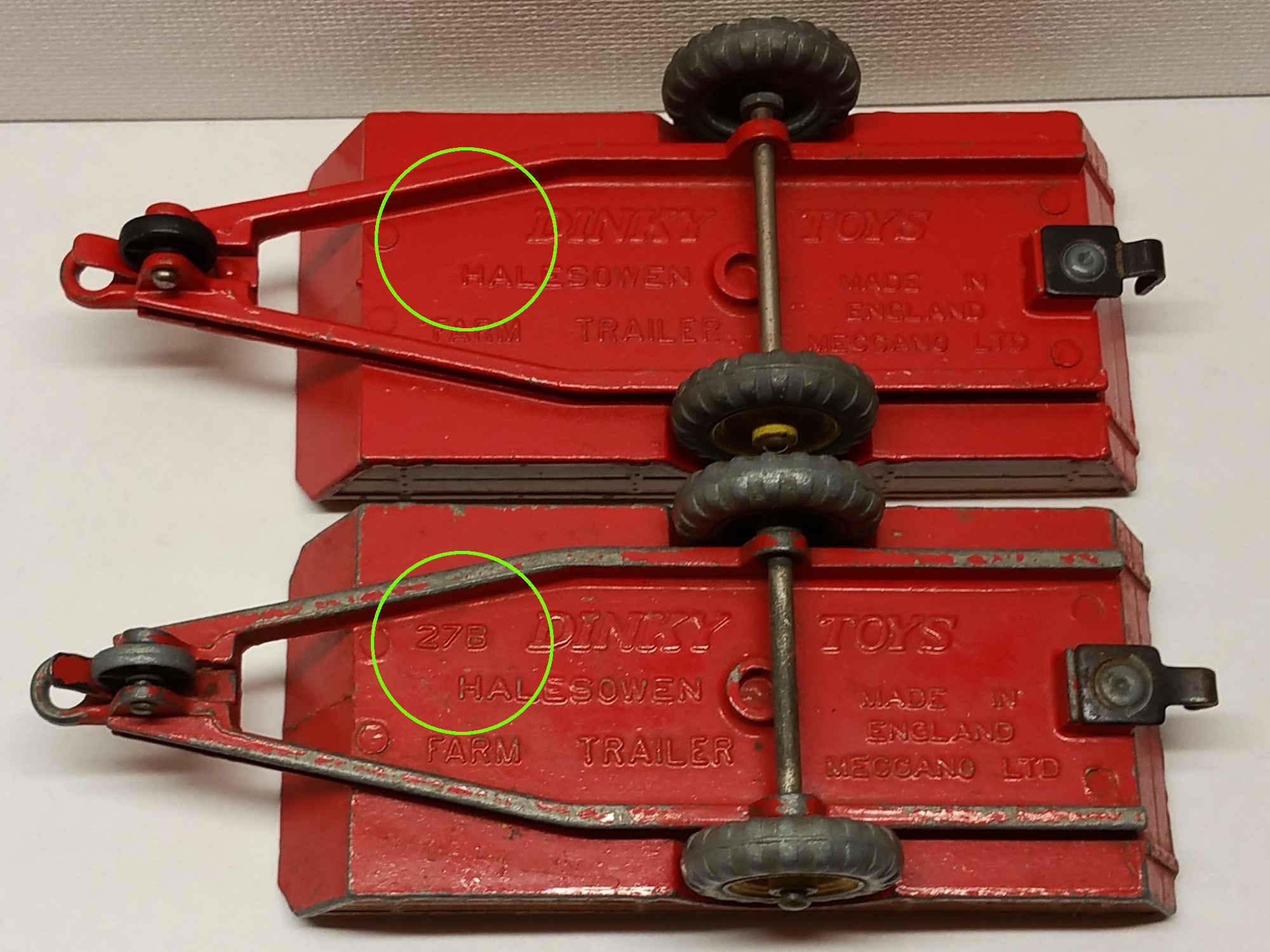 Casting Variations - No Model Number & Black Plastic Wheel (top)/ Metal Wheel & Identification Model Number (bottom)