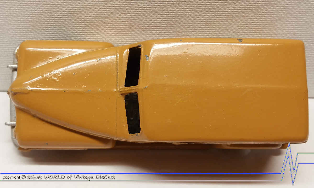 Dinky #344 - Fawn with Brown Panels, Ridged Beige Hubs and 344 Model Number on Baseplate