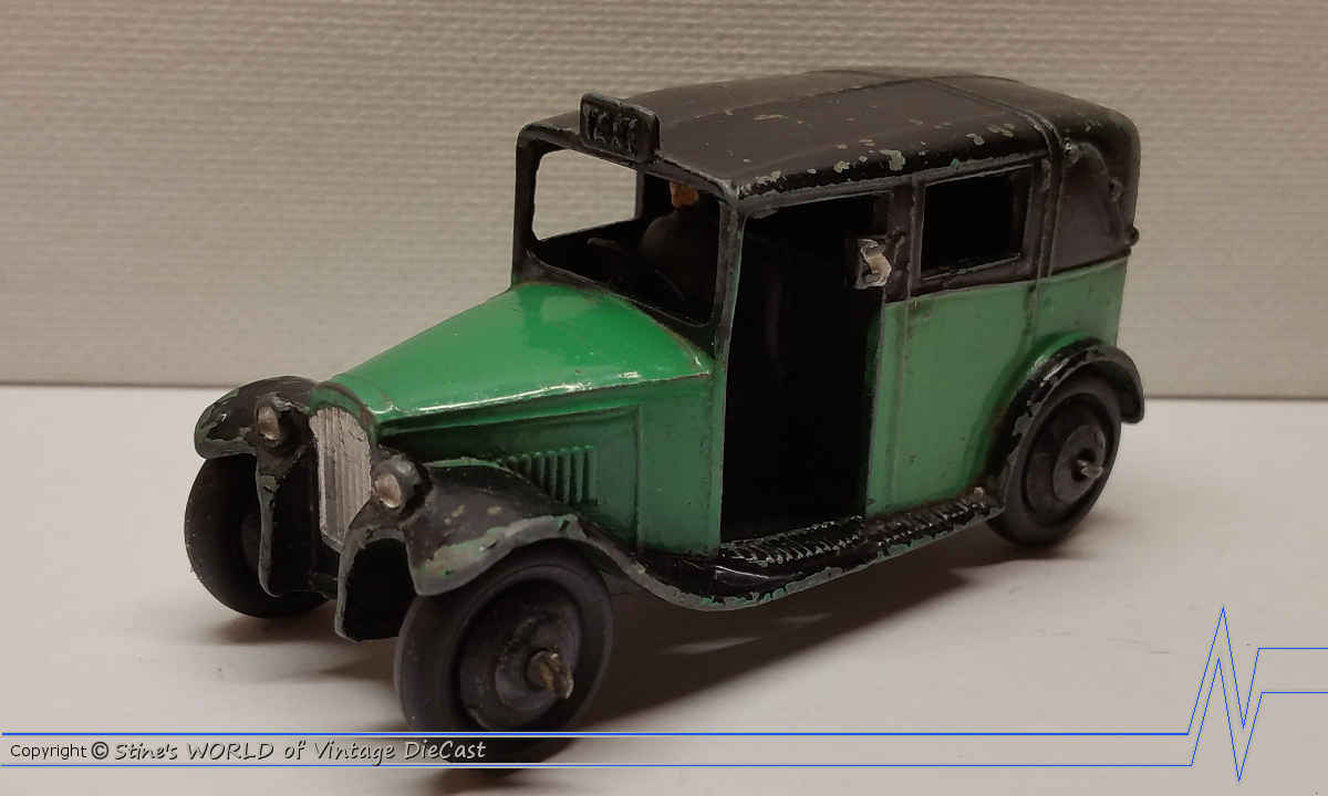 Several models were made of this taxi as early as 1936. Earlier versions used smooth black hubs versus the later models that used coloured ridged hubs.