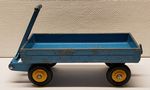 The Dinky #105c 4-Wheeled Hand Truck was introduced in 1948 and subsequently renumbered to 383 in 1954. The early versions were solid blue and later versions were mainly green with yellow handles.
