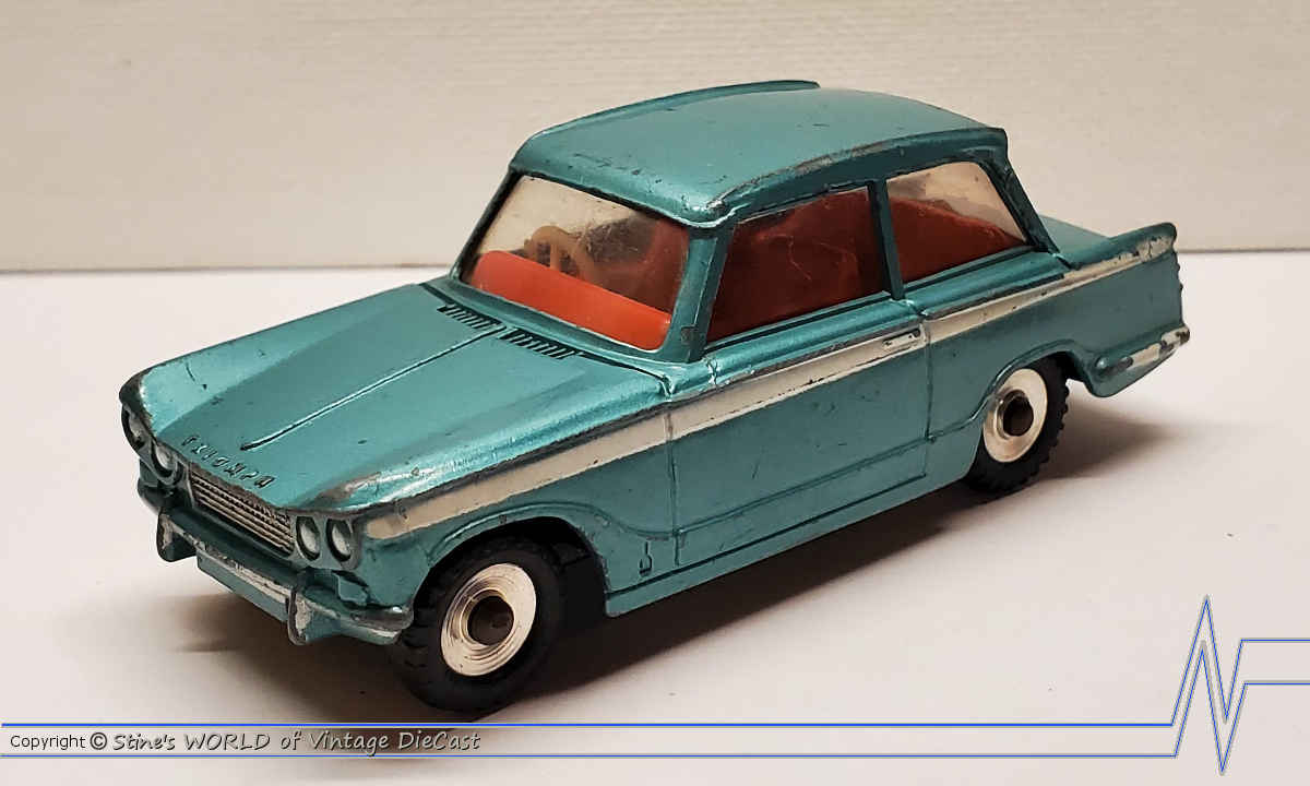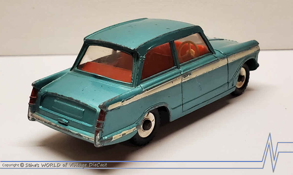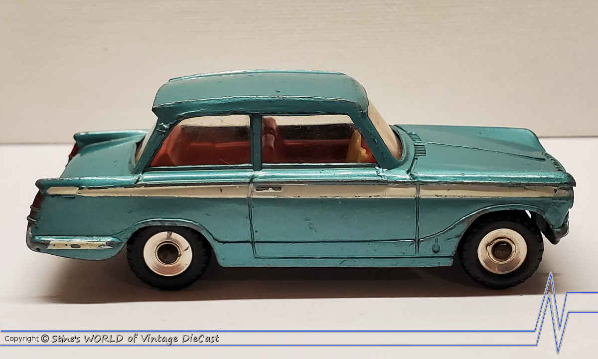 The Triumph Vitesse was introduced in 1964. This model came in a metallic blue body colour with a white stripe on the sides and spun hubs.