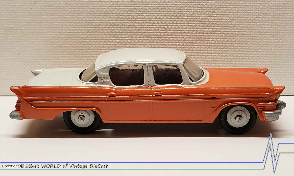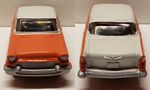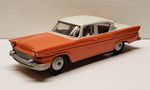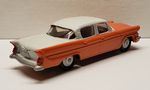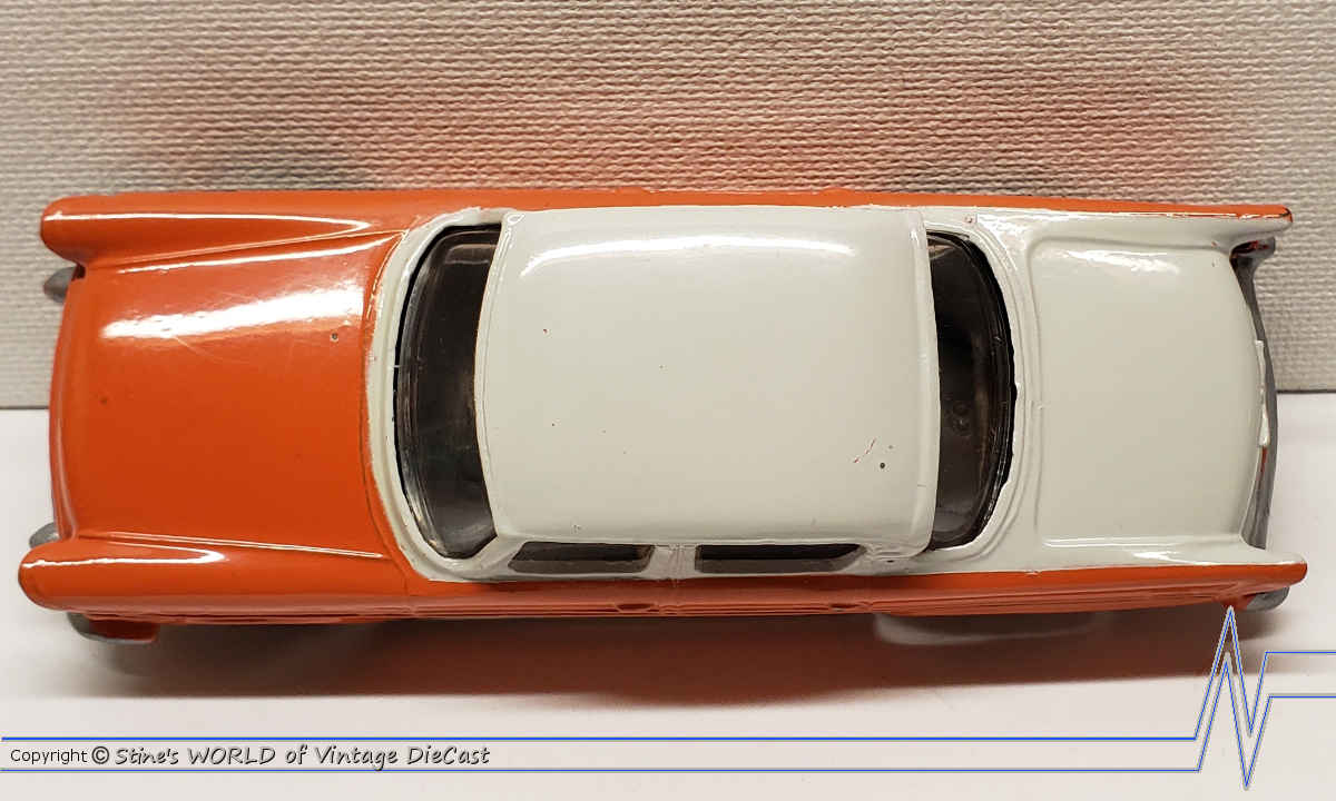 The Packard Clipper was introduced in 1958. This model came in two different two-tone colour schemes - cream body with red roof/trunk or orange body with cream roof/ truck. Both versions included ridged hubs and plastic windshields.