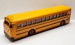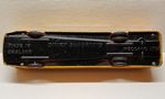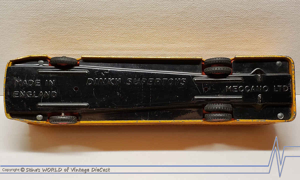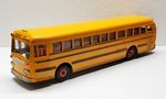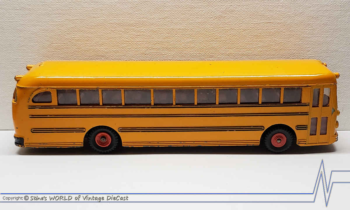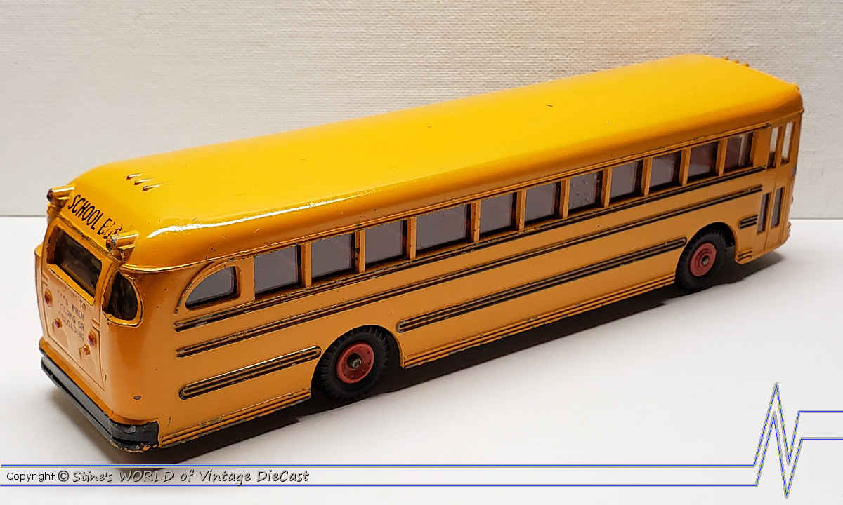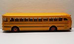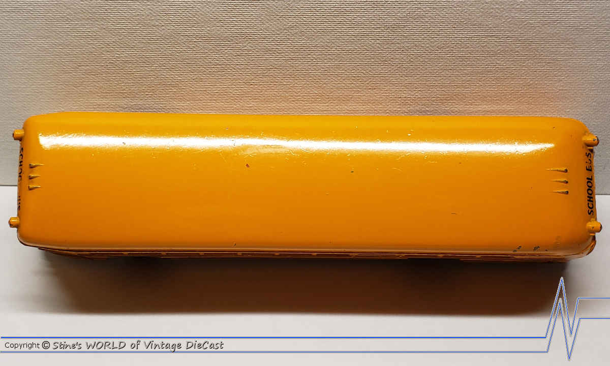 The Wayne School Bus was introduced in 1961 and was considered a large Dinky Toy at almost 9” in length. This model was available in a yellow body with either a black or red stripe on the side and plastic hubs.