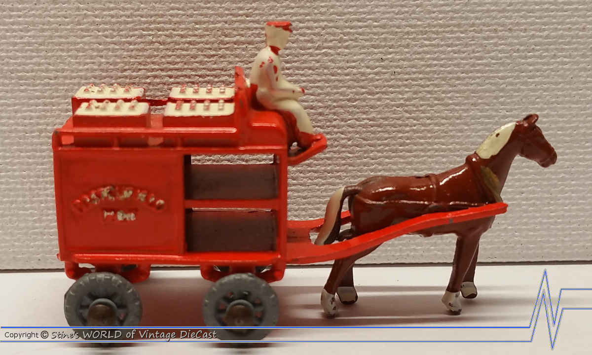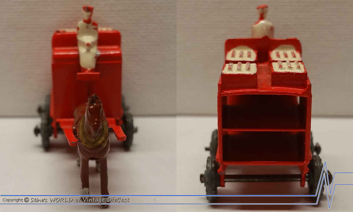 Moko Lesney Matchbox #7a Horsedrawn Milk Float (1954) - Chocolate Brown Horse with Orange Float