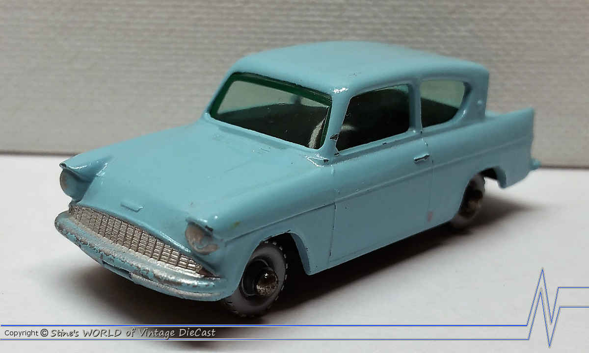 Moko Lesney Matchbox #7b Ford Anglia (1961) - Grey Plastic Wheels with Blue Tinted Windows