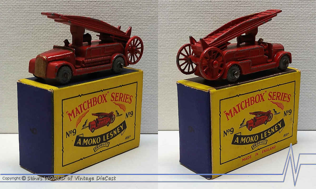Moko Lesney Matchbox #9b Dennis Fire Engine (1958) - Second Engine with Metal Wheels