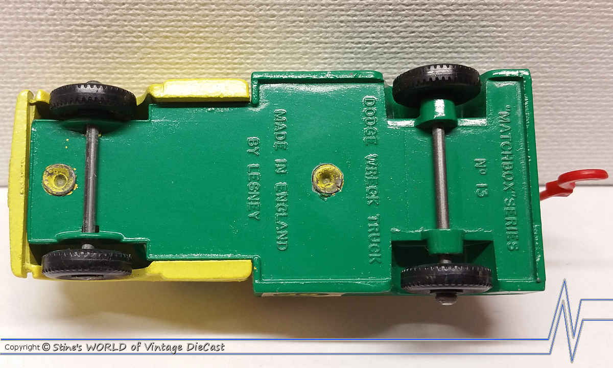 Moko Lesney Matchbox #13d Dodge Wreck Truck (1965) - Yellow Cab with Red Hook