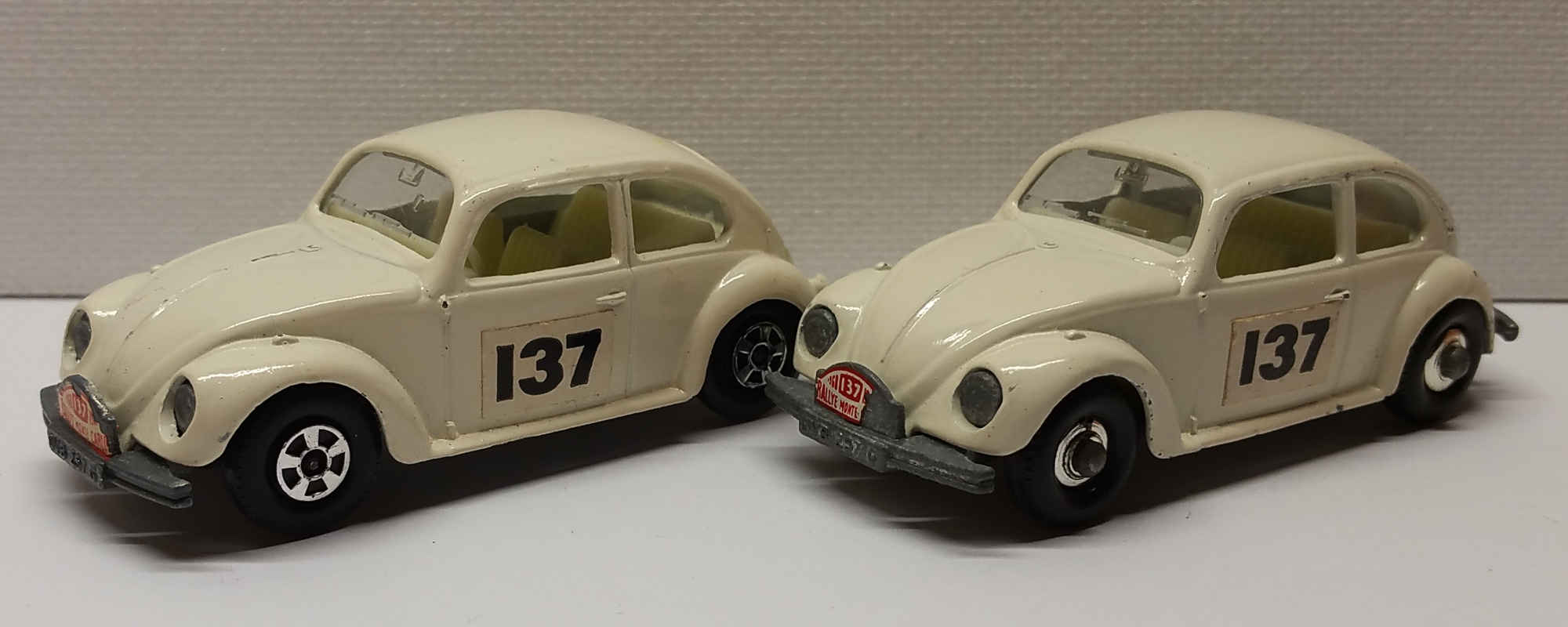 Transitional Model #15D - 1969 Superfast Version (left)/ 1968 Regular Wheel Lesney Matchbox (right)