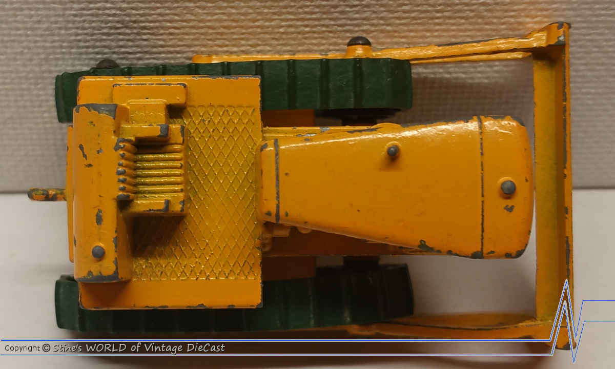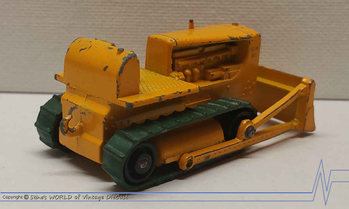 Moko Lesney Matchbox #18d Caterpillar Bulldozer (1964) - Black Rollers with Brace & Hole in Baseplate