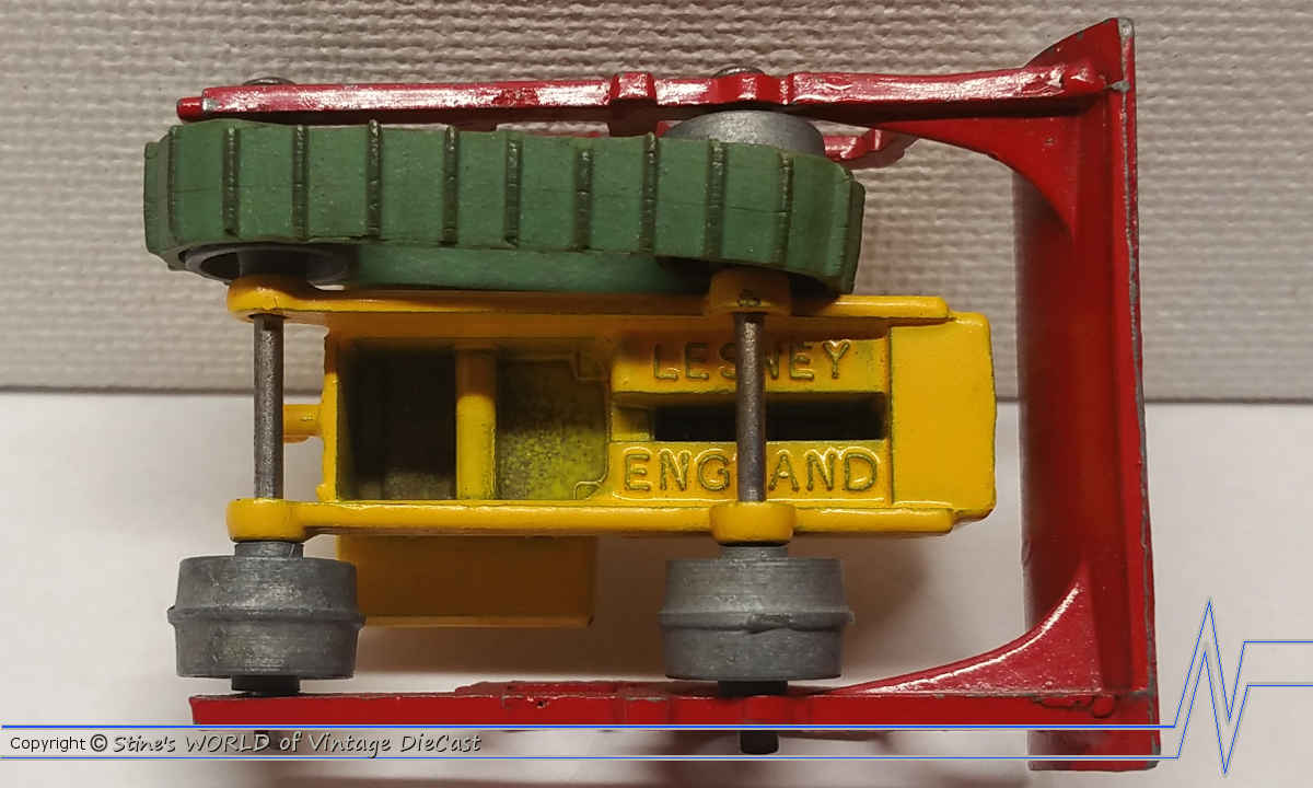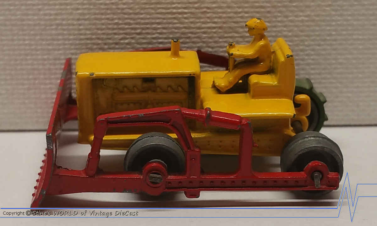 Moko Lesney Matchbox #18a Caterpillar Bulldozer (1955) - Yellow Body with Red Blade (1 track missing)