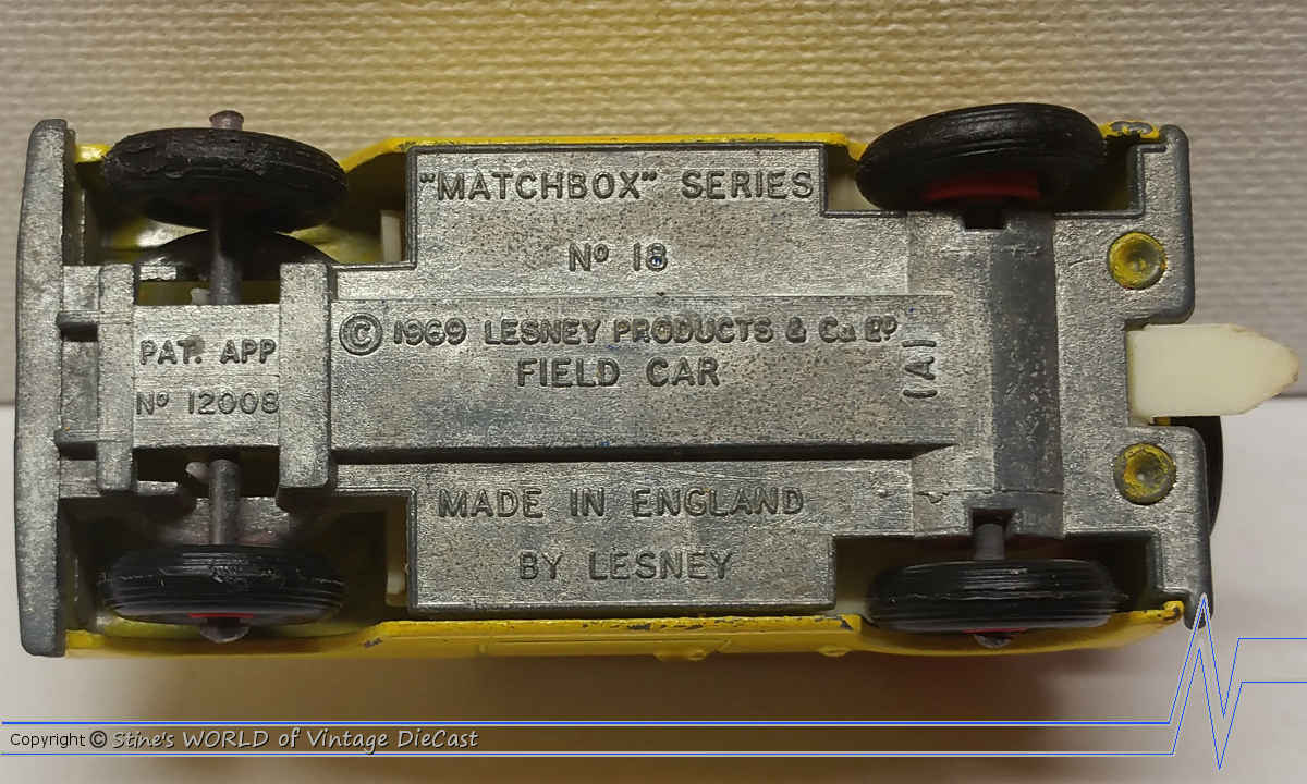Moko Lesney Matchbox #18e Field Car (1969) - Red Hubs with Silver Baseplate