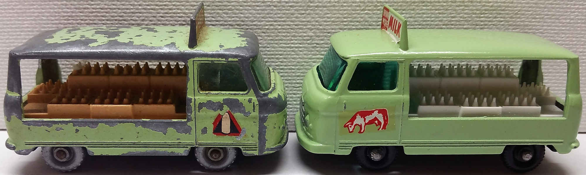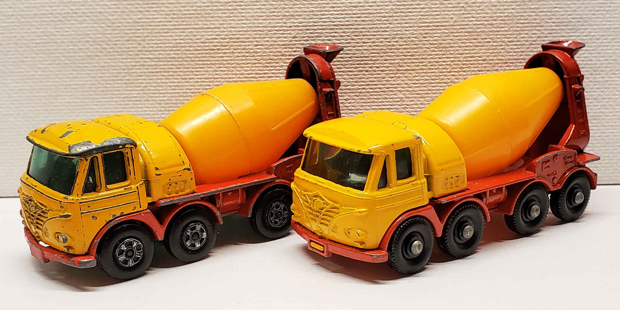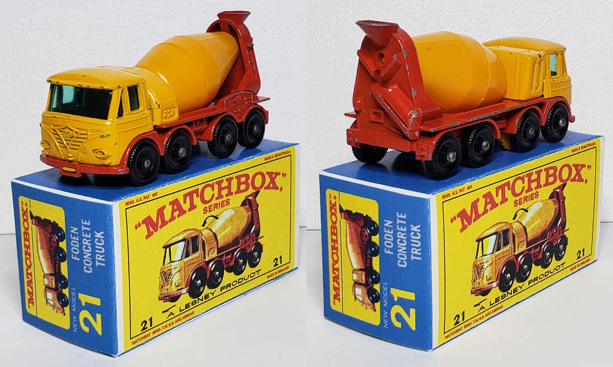 Transitional Model #21D - 1970 Superfast Version (left)/ 1968 Regular Wheel Lesney Matchbox (right)