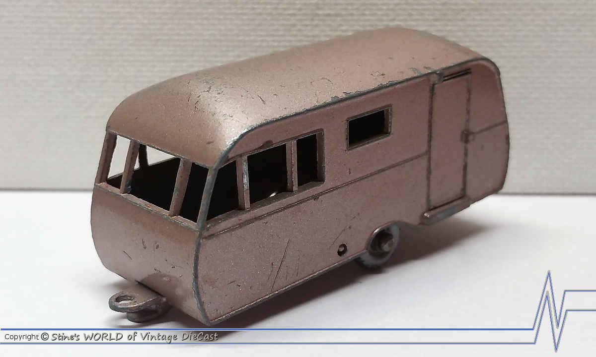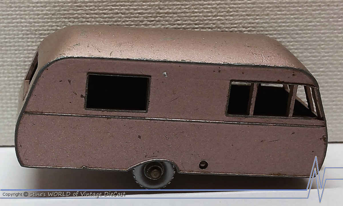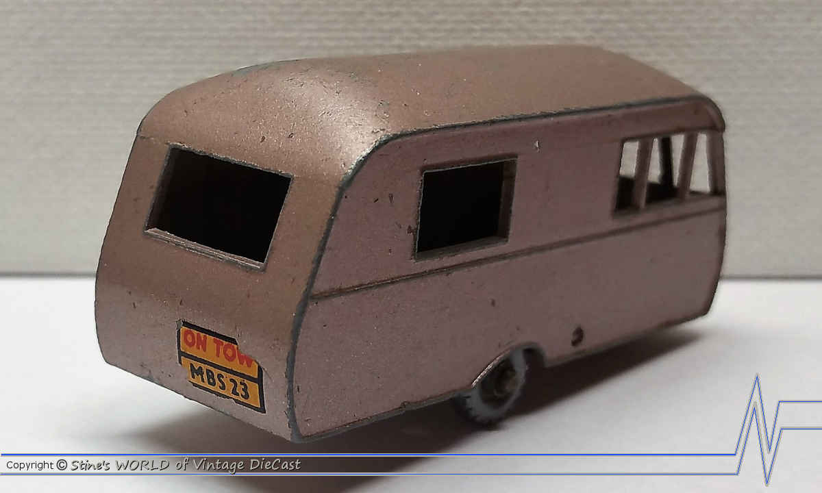 Moko Lesney Matchbox #23c Bluebird Dauphine Caravan (1960) - Metallic Mauve Body & Baseplate with Grey Plastic Wheels & Flat Surface on Tow Hitch