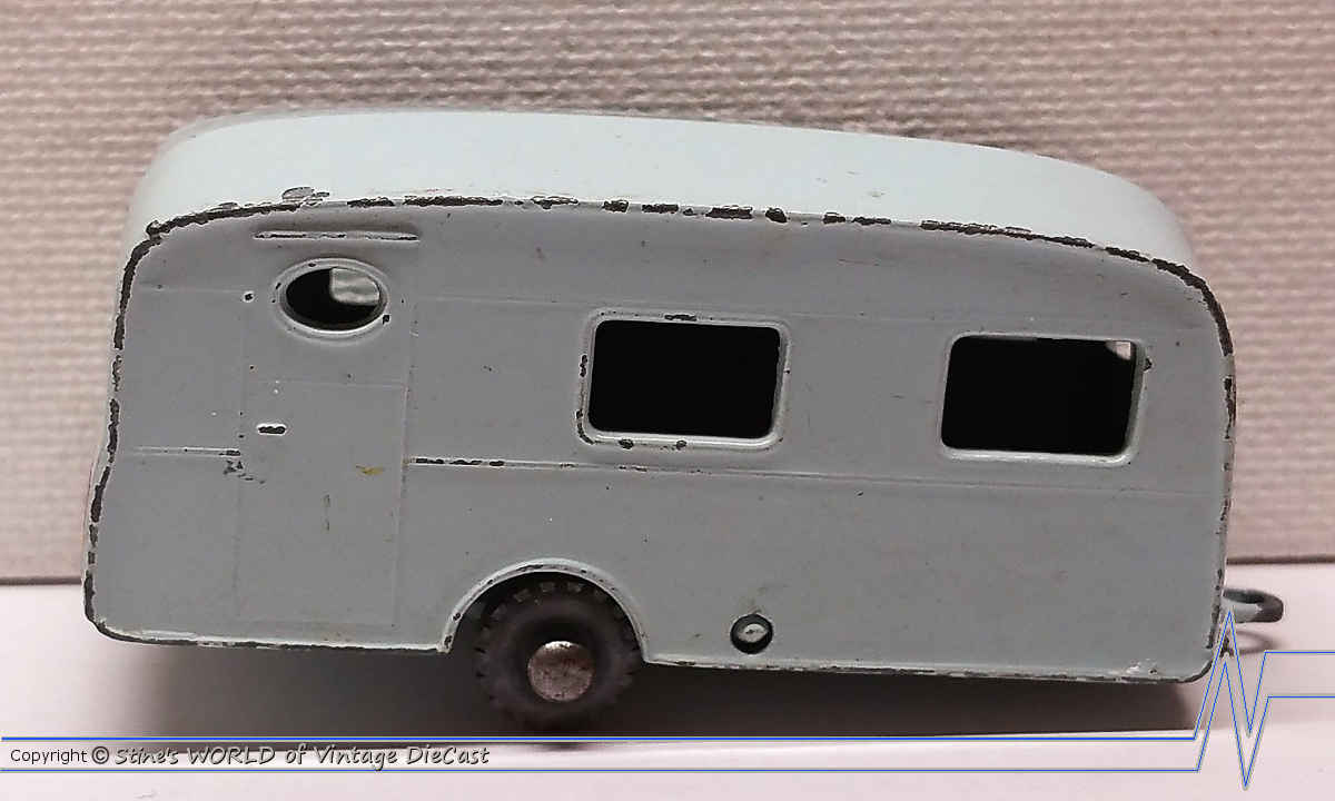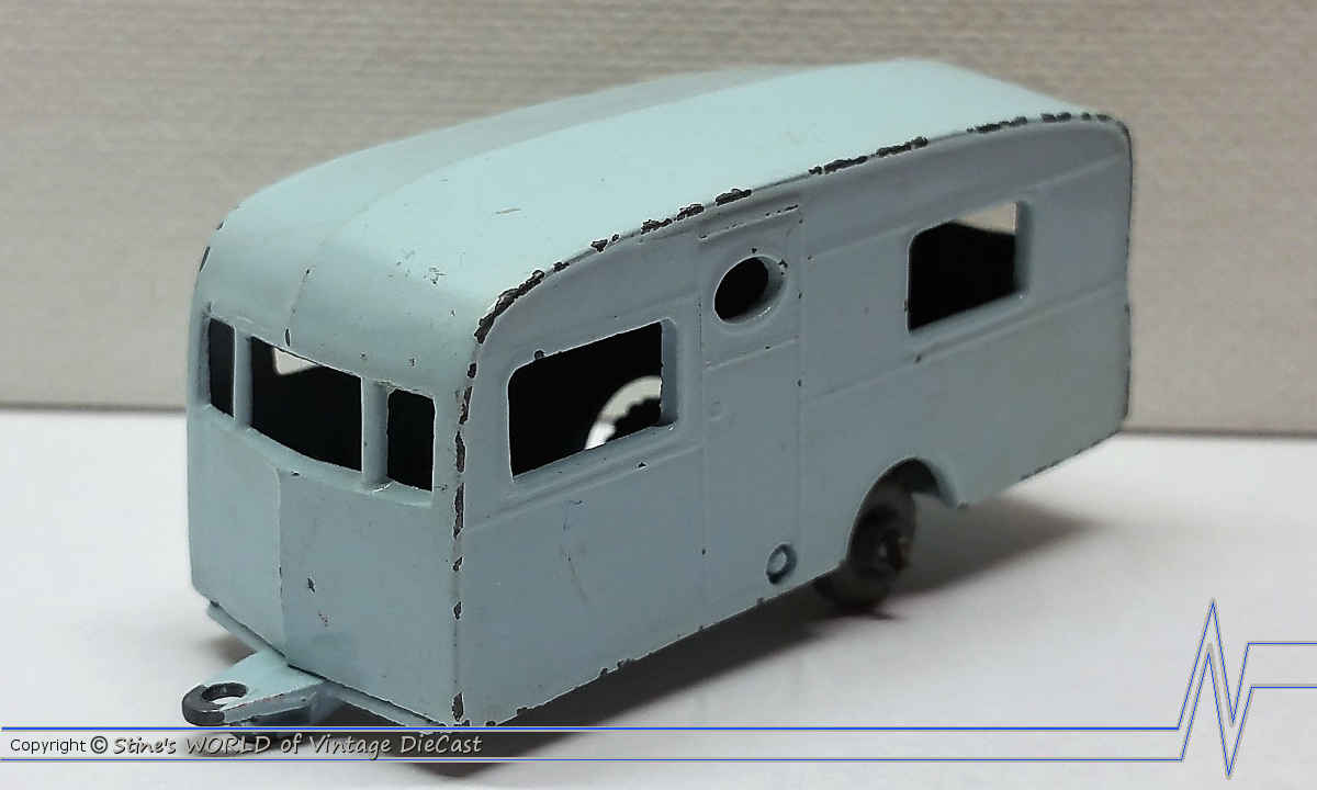 Moko Lesney Matchbox #23a Berkeley Cavalier Caravan (1956) - Pale Blue with Metal Wheels & No Model on the Baseplate