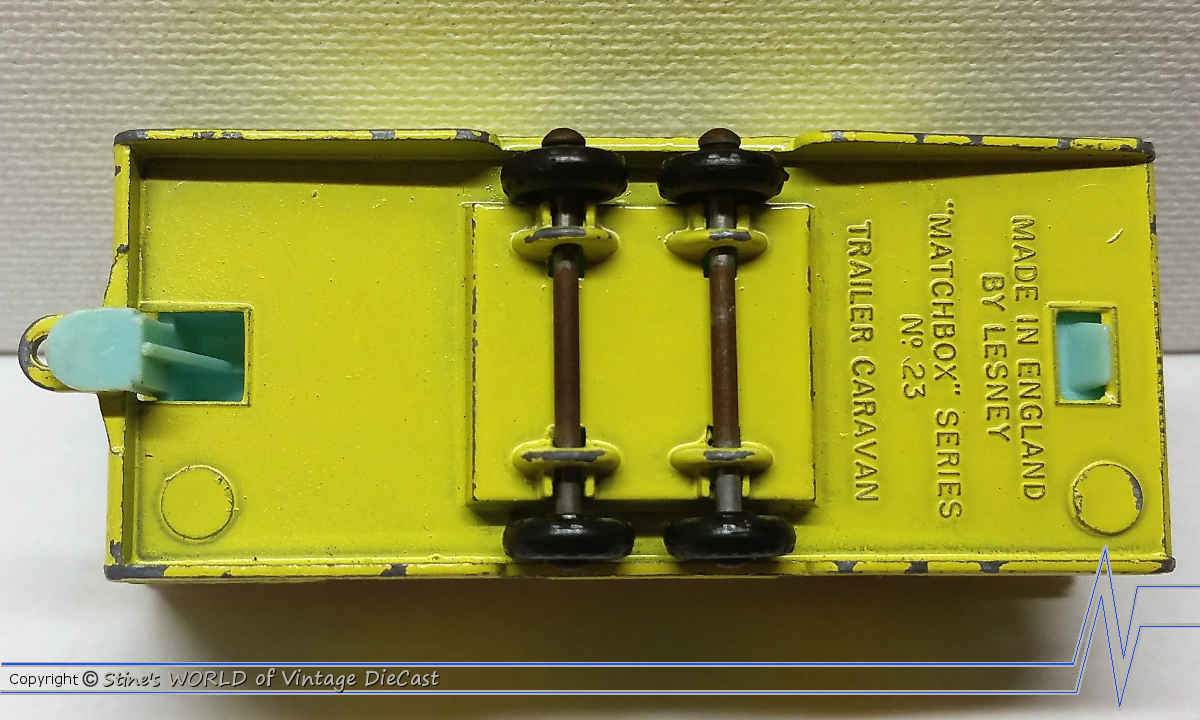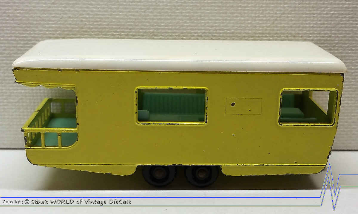 Moko Lesney Matchbox #23d Trailer Caravan (1965) - Yellow Body with Black Plastic Wheels & Curved Tow Guide