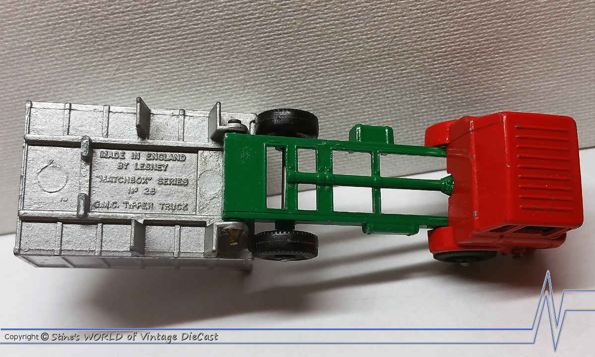 Moko Lesney Matchbox #26c GMC Tipper Truck (1968) - Red Cab with Grey Tipper & Black Plastic Wheels
