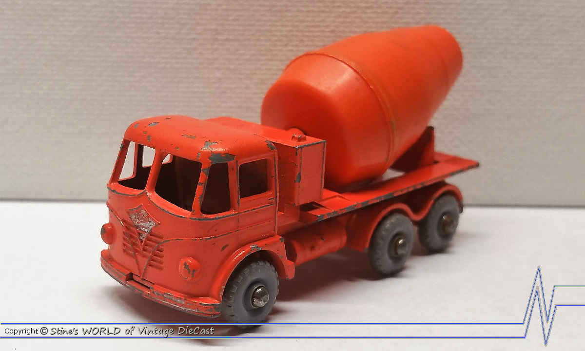 Moko Lesney Matchbox #26b Foden Cement Truck (1961) - Grey Plastic Wheels with Orange Mixer Barrel & Corner Support Brackets