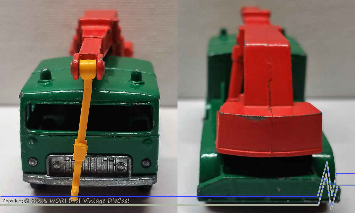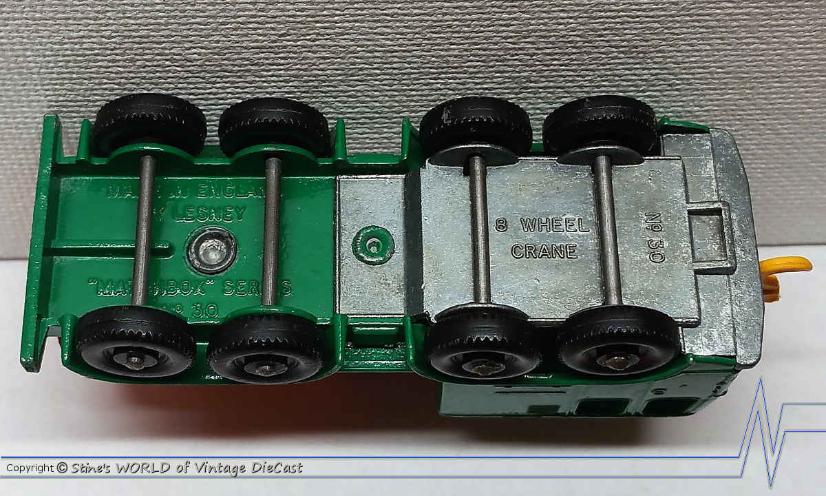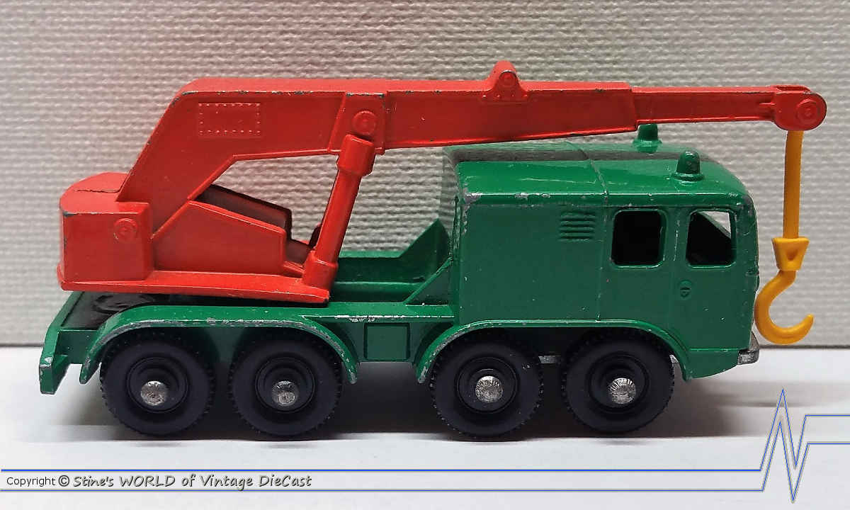 Moko Lesney Matchbox #30c Faun 8 Wheeled Crane (1965) - Green Body with Rear Brace