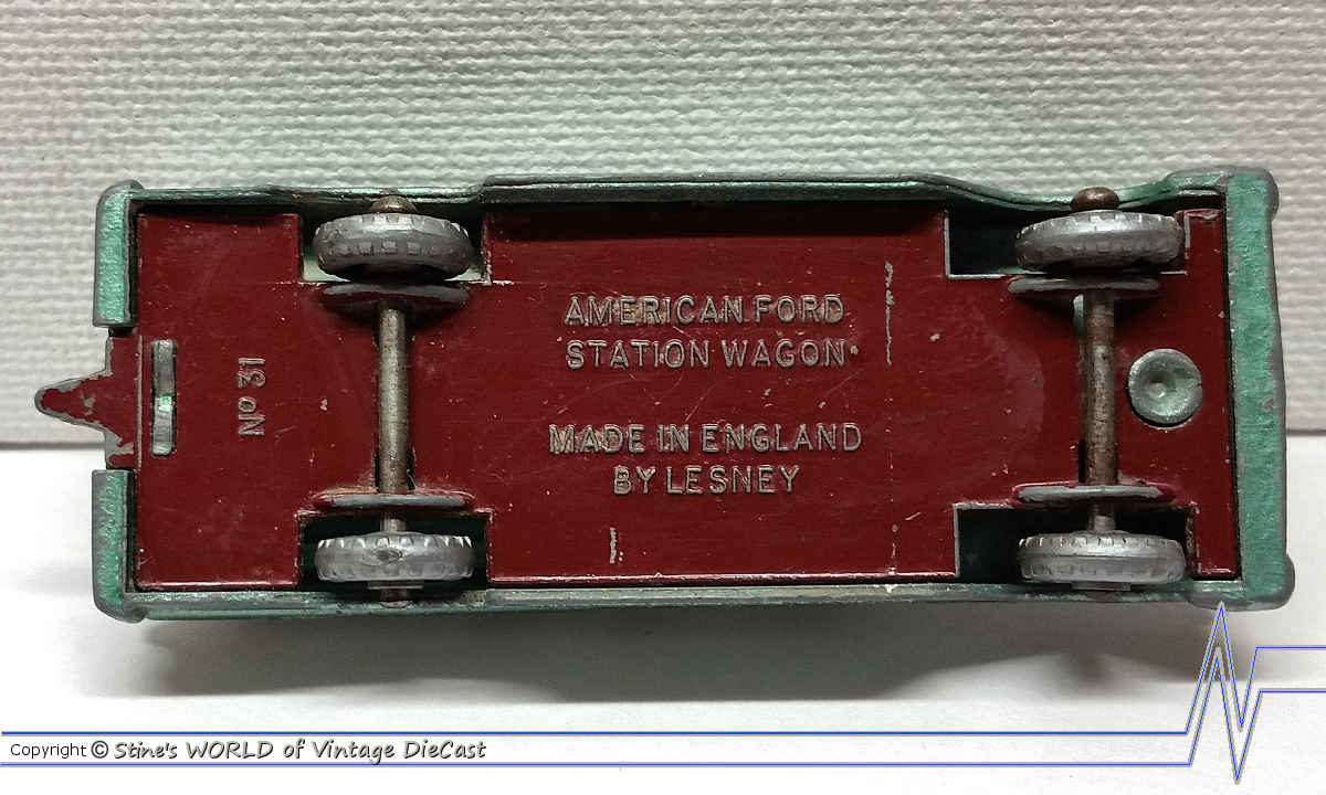 Moko Lesney Matchbox #31b Ford Customline Station Wagon (1959) - Green Body with Pink Roof, Crimson Baseplate & Grey Silver Wheels