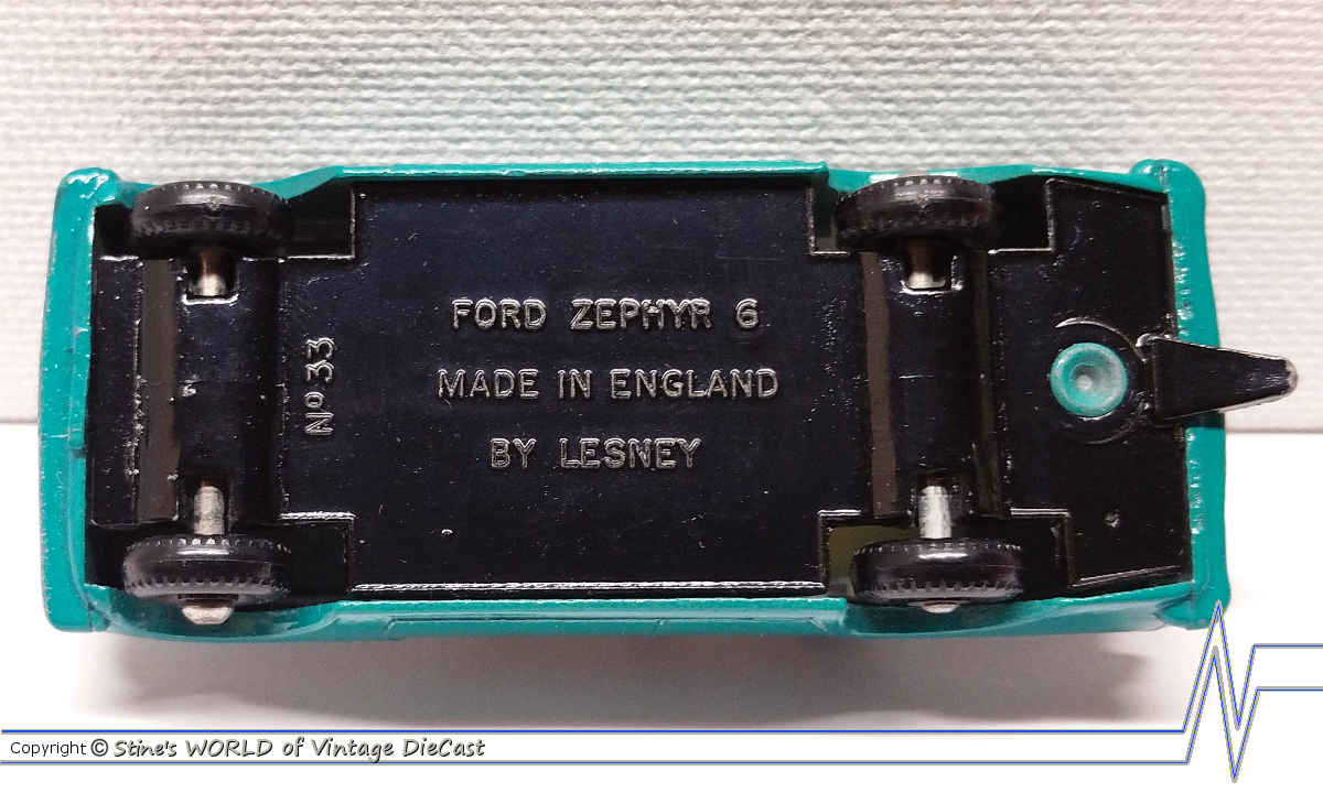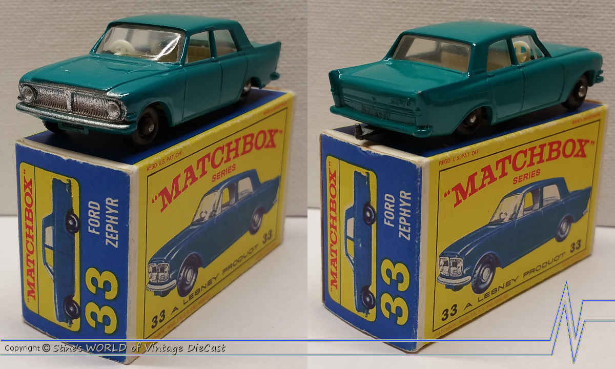 Moko Lesney Matchbox #33b Ford Zephyr 6 Mk III (1963) - Blue Body, Black Base, Cream Interior with Black Wheels