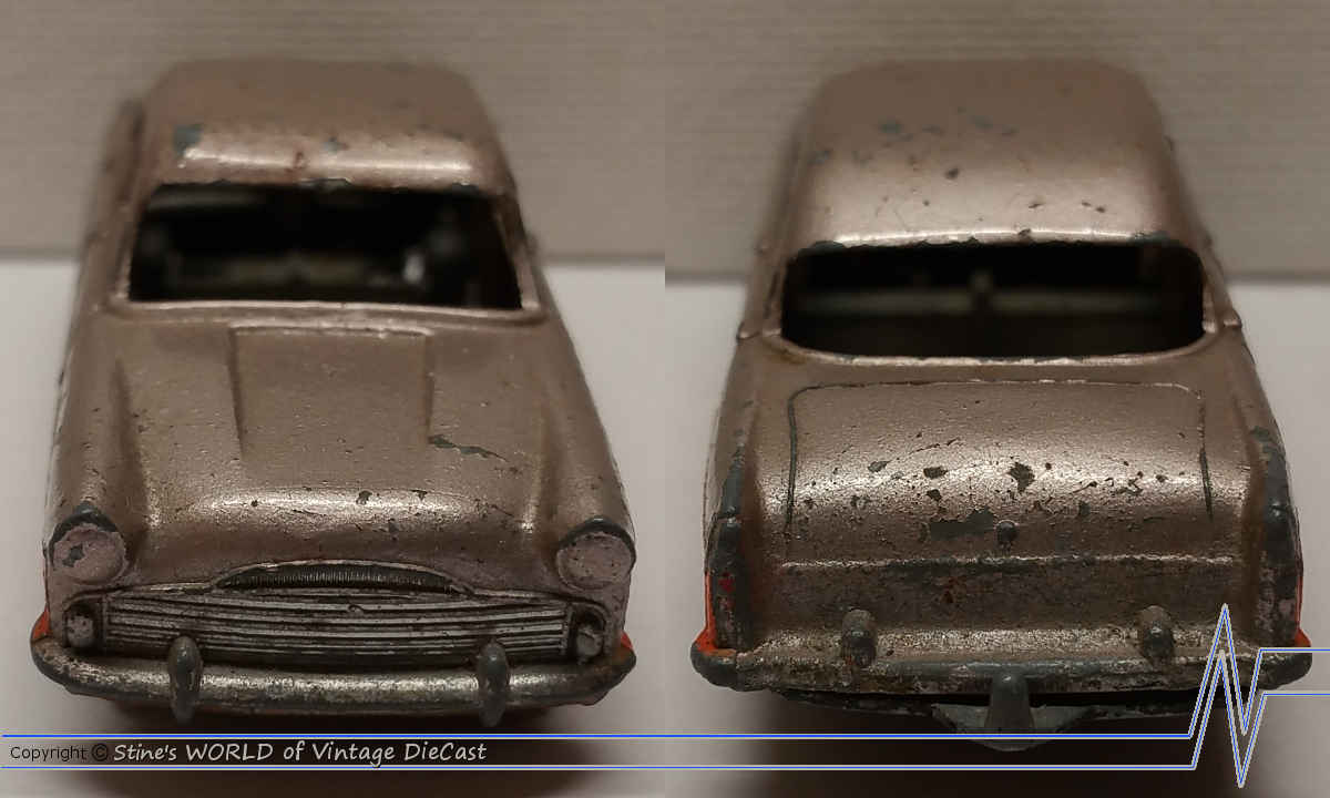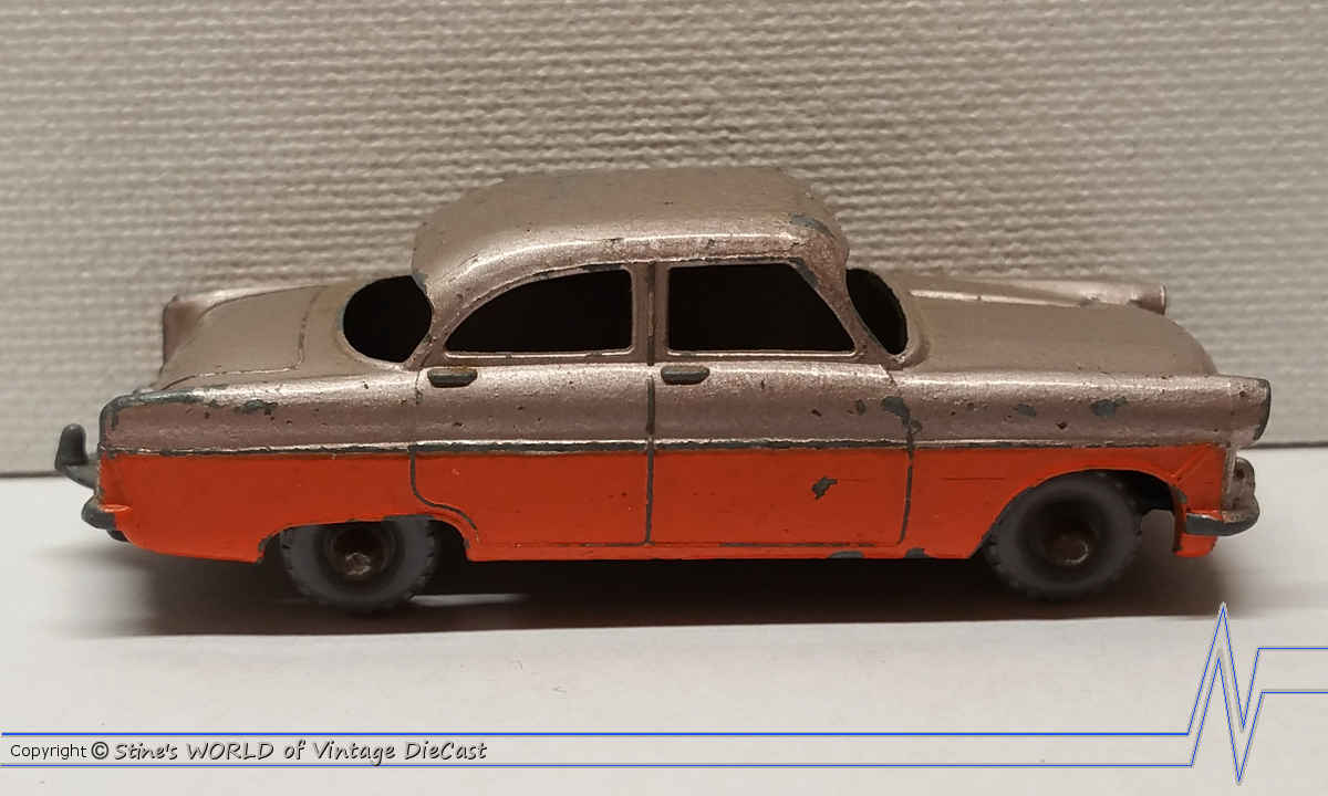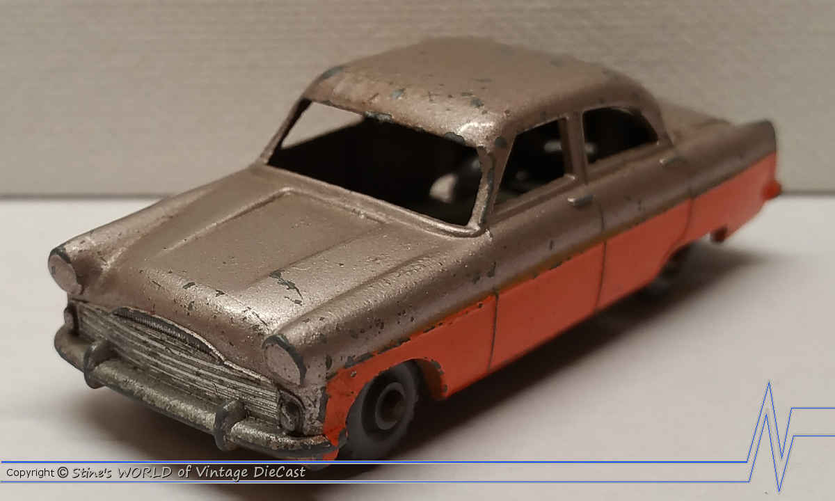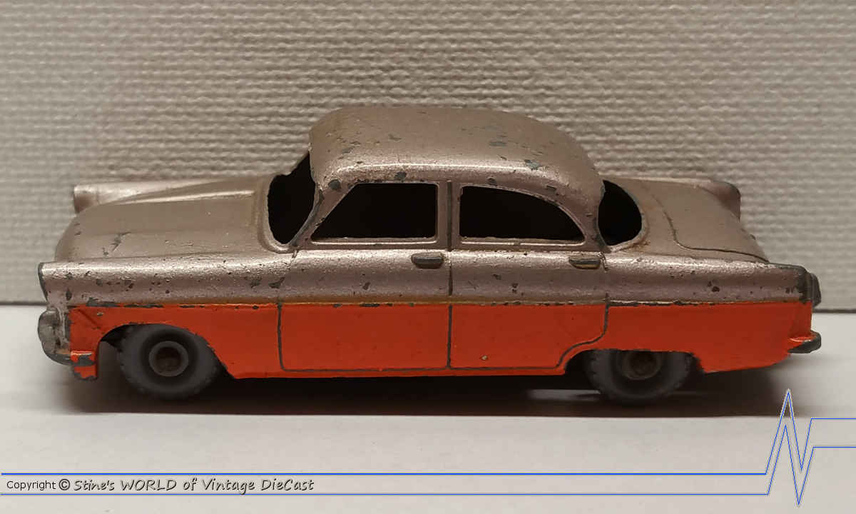 Moko Lesney Matchbox #33a Ford Zodiac (1957) - Silver & Orange Body, Grey Wheels, No Windows