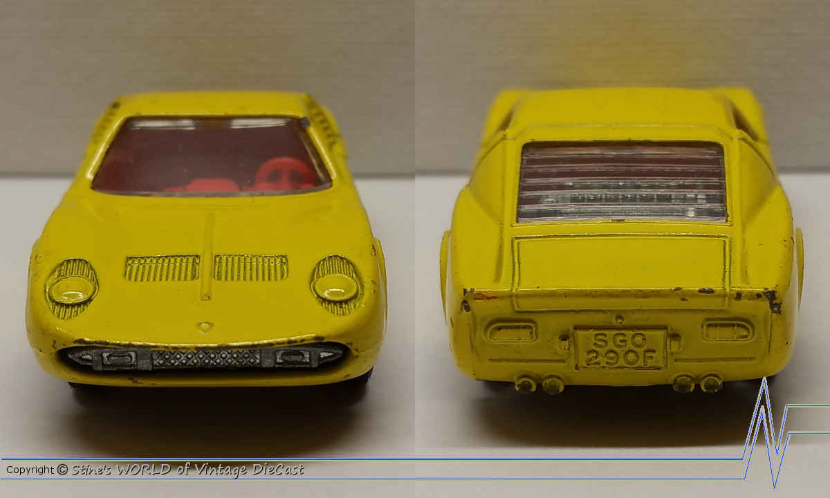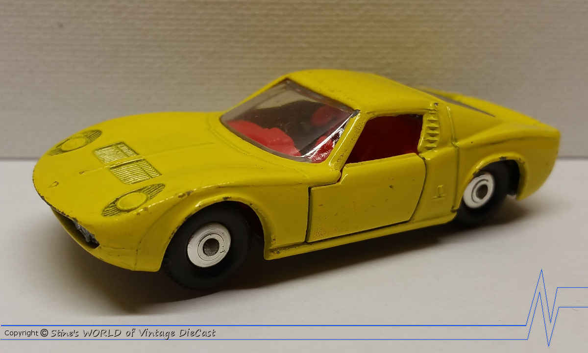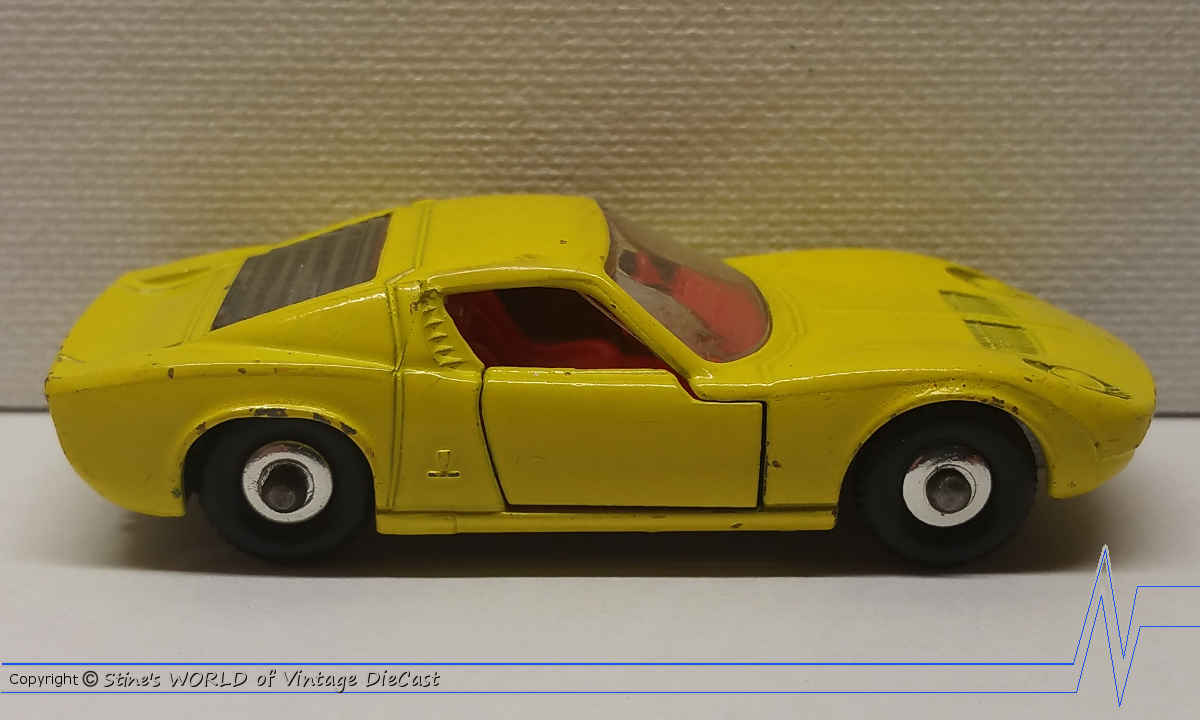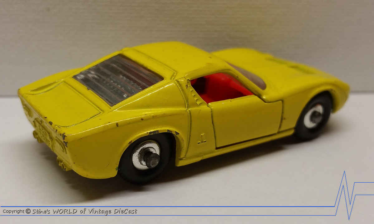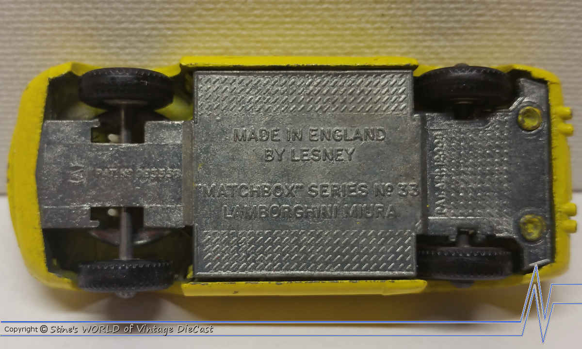 Moko Lesney Matchbox #33c Lamborghini Miura (1968) - Yellow with Red Interior & Clear Glass