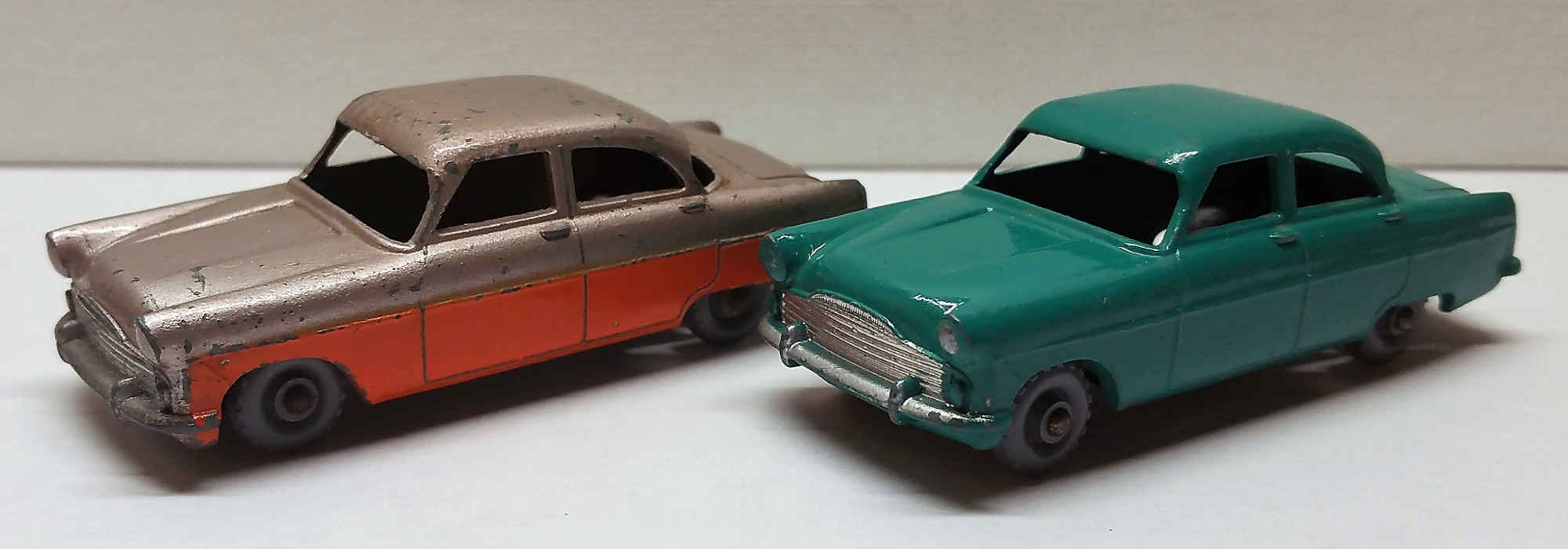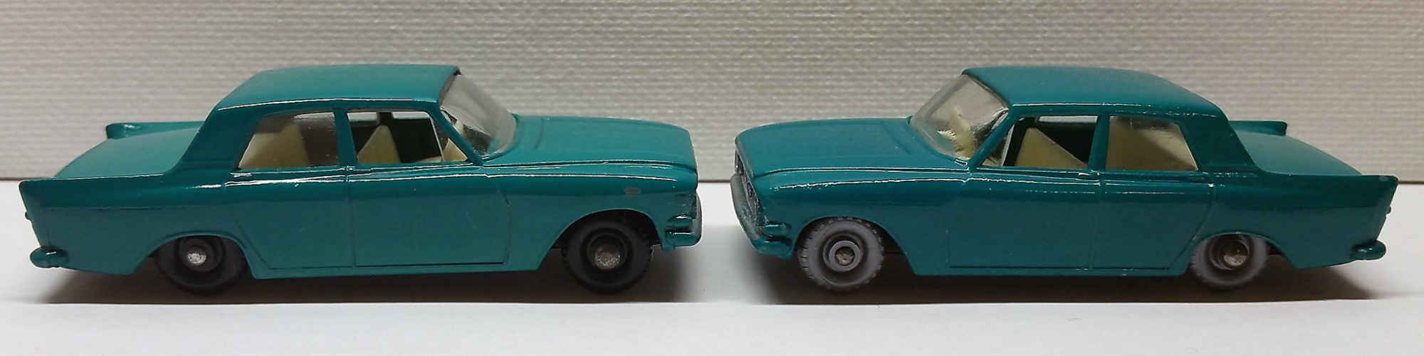 Transitional Model #33C - 1969 Superfast Version (left)/ 1968 Regular Wheel Lesney Matchbox (right)