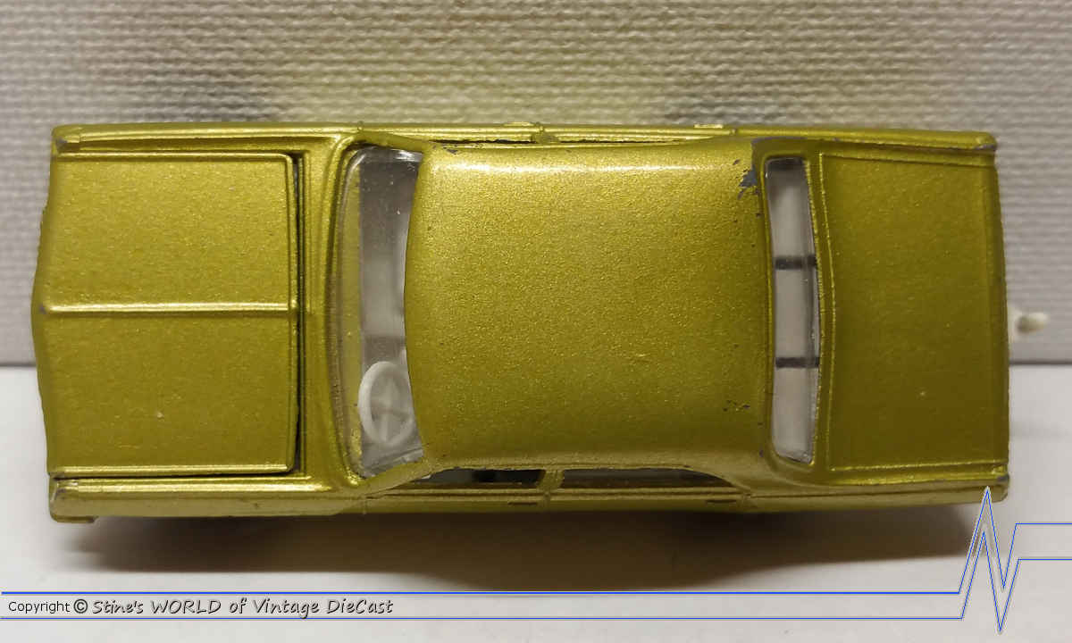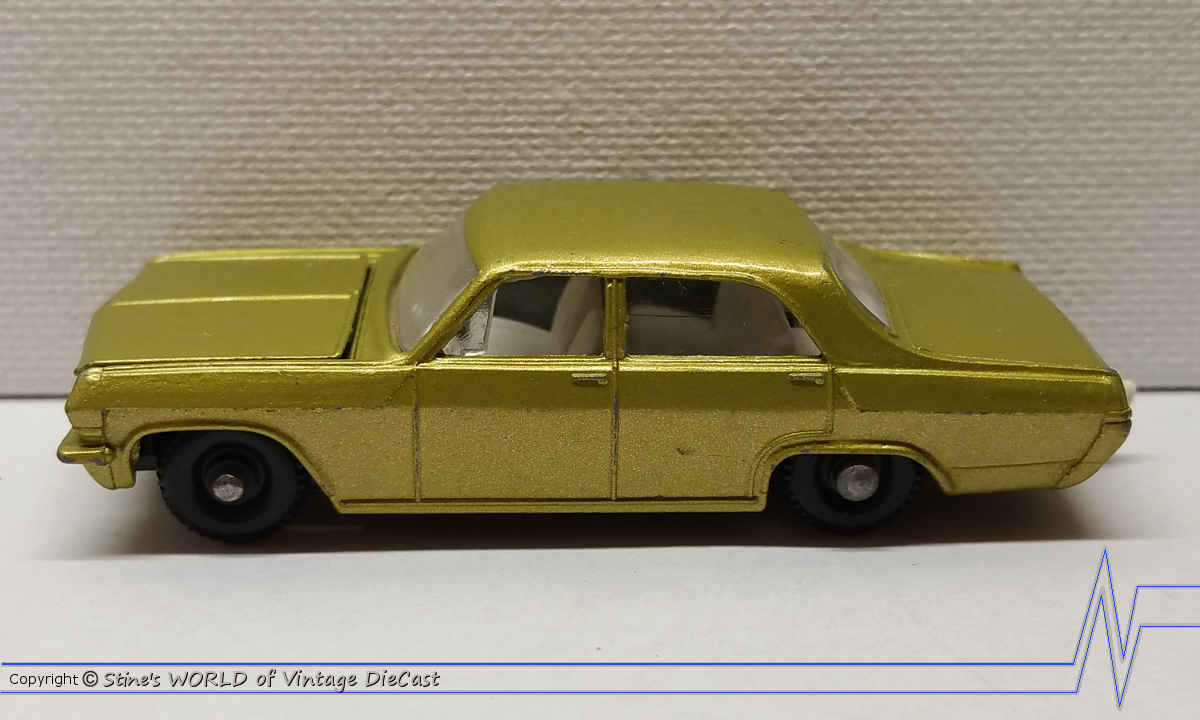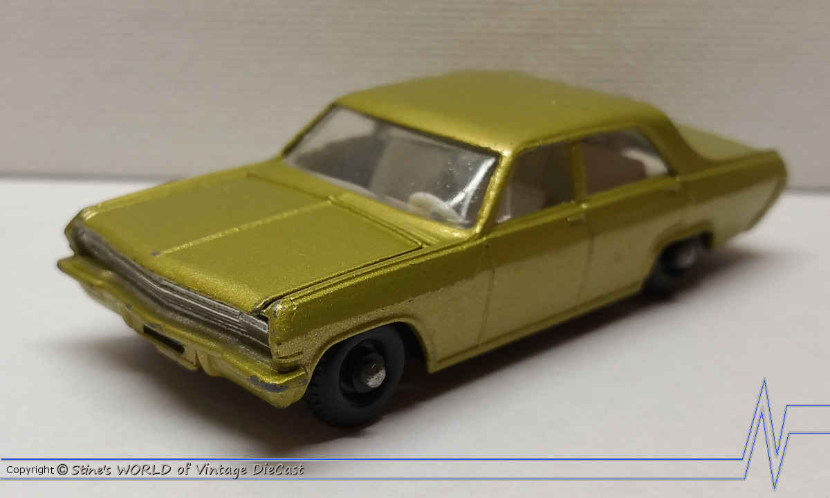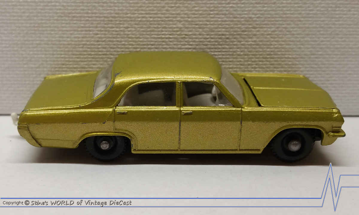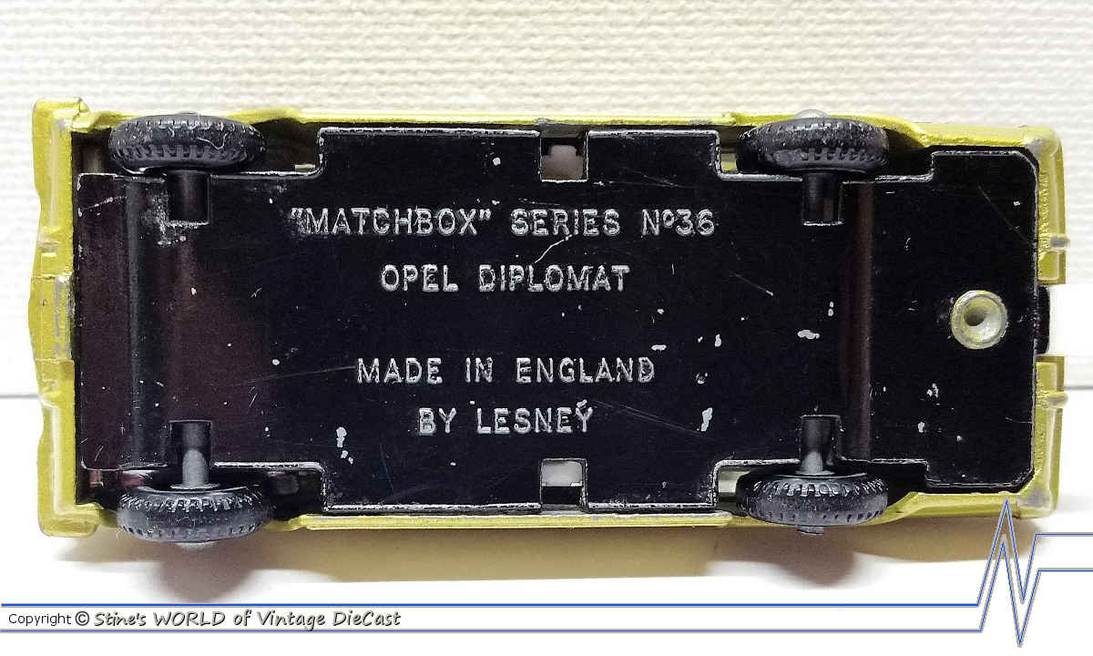 Moko Lesney Matchbox #36c Opel Diplomat (1966) - Metallic Gold Body, Black Metal Baseplate, No Tow Guide & Chromed Engine