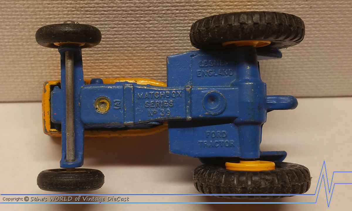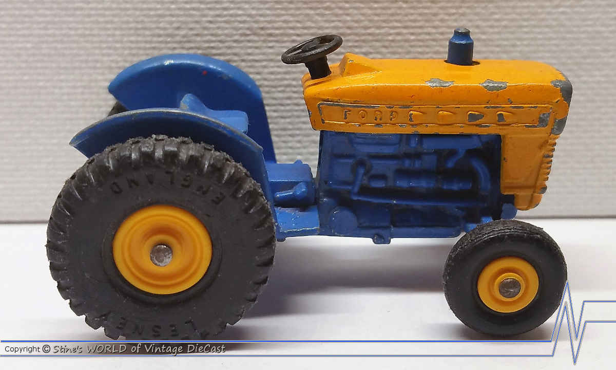 Moko Lesney Matchbox #39c Ford Tractor (1967) - Blue & Yellow Body with a Short Exhaust