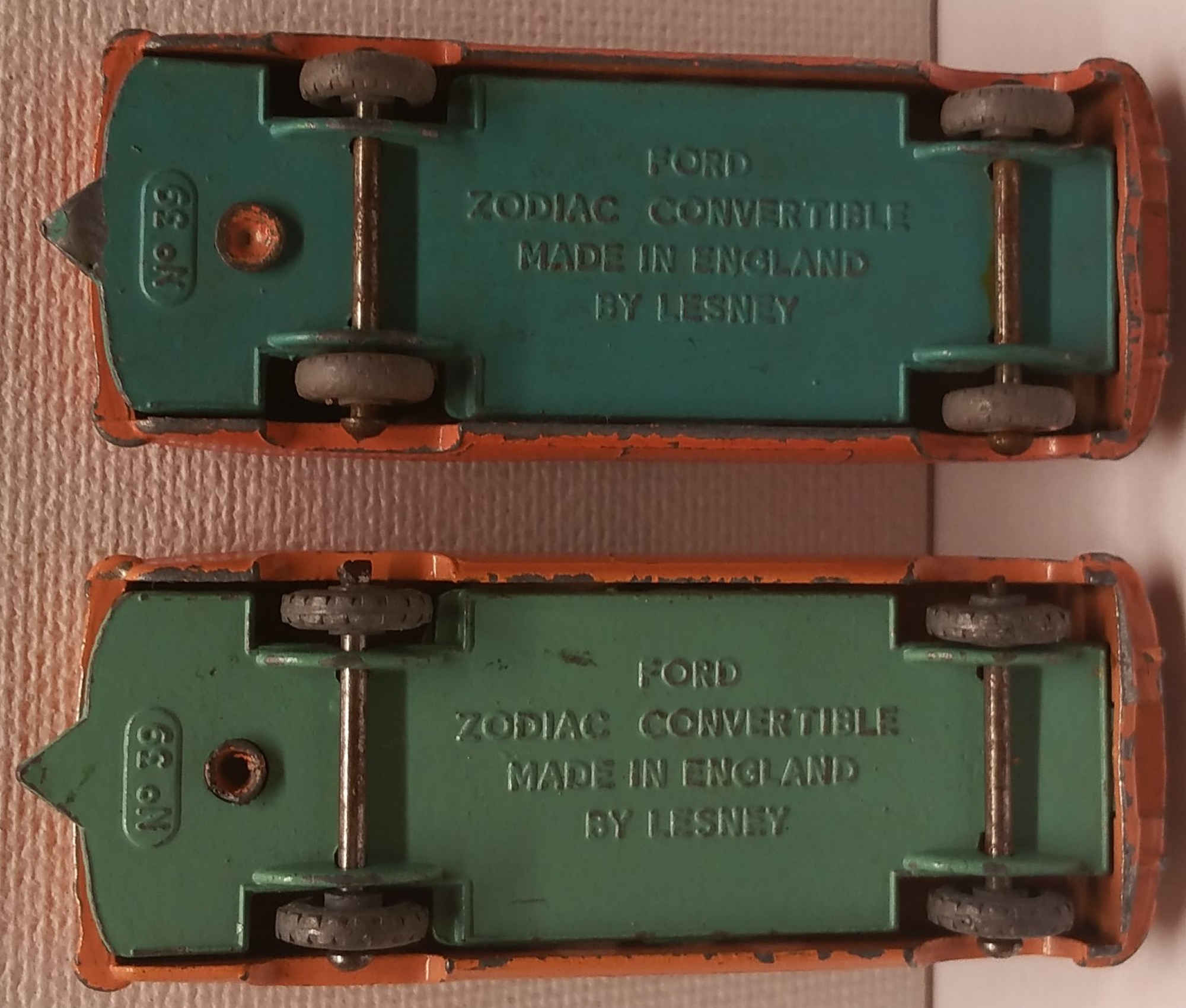 Moko Lesney Matchbox #39a Ford Zodiac Convertable (1957) - Peach Body with Light Green Baseplate & Metal Wheels