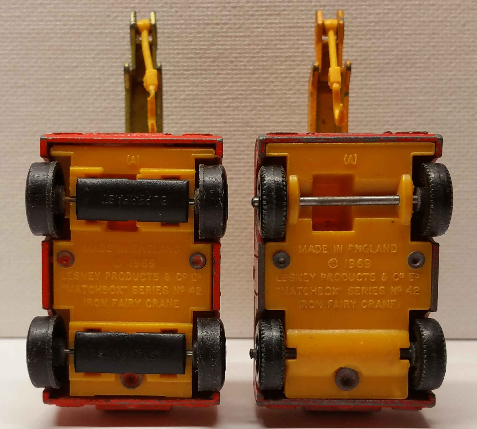 Baseplate Differences #42C - Superfast Version (left)/ Regular Wheel Lesney Matchbox (right)
