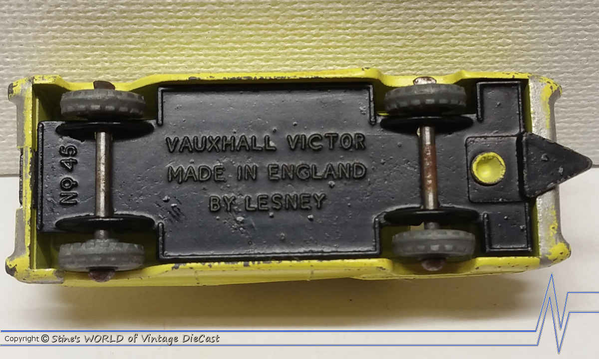 Moko Lesney Matchbox #45a Vauxhall Victor (1958) - Yellow Body, No Window & Metal Wheels
