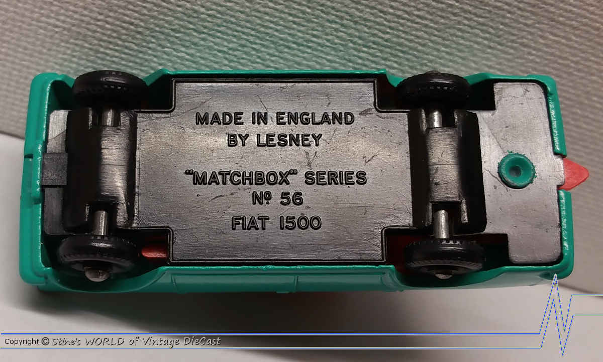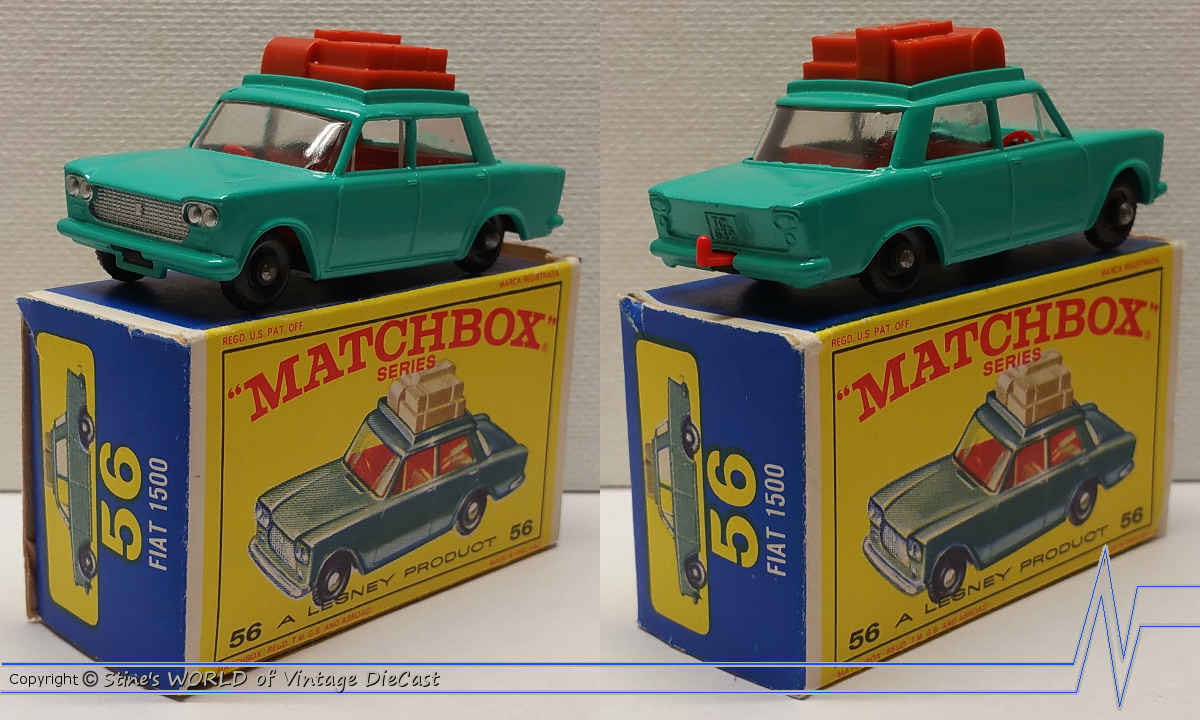 Moko Lesney Matchbox #56b Fiat 1500 (1965) - Turquoise Body with Light Brown Luggage