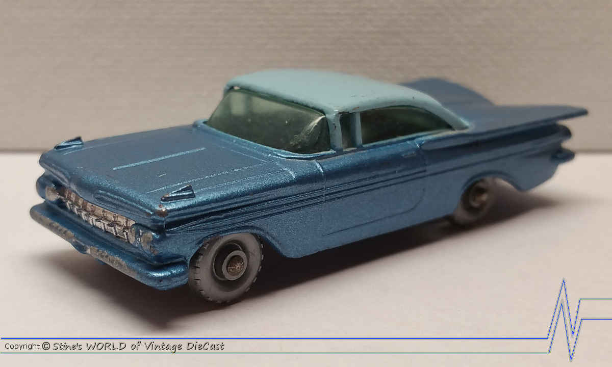 Moko Lesney Matchbox #57b Chevrolet Impala (1961) - Dark Blue Base with Grey Plastic Wheels