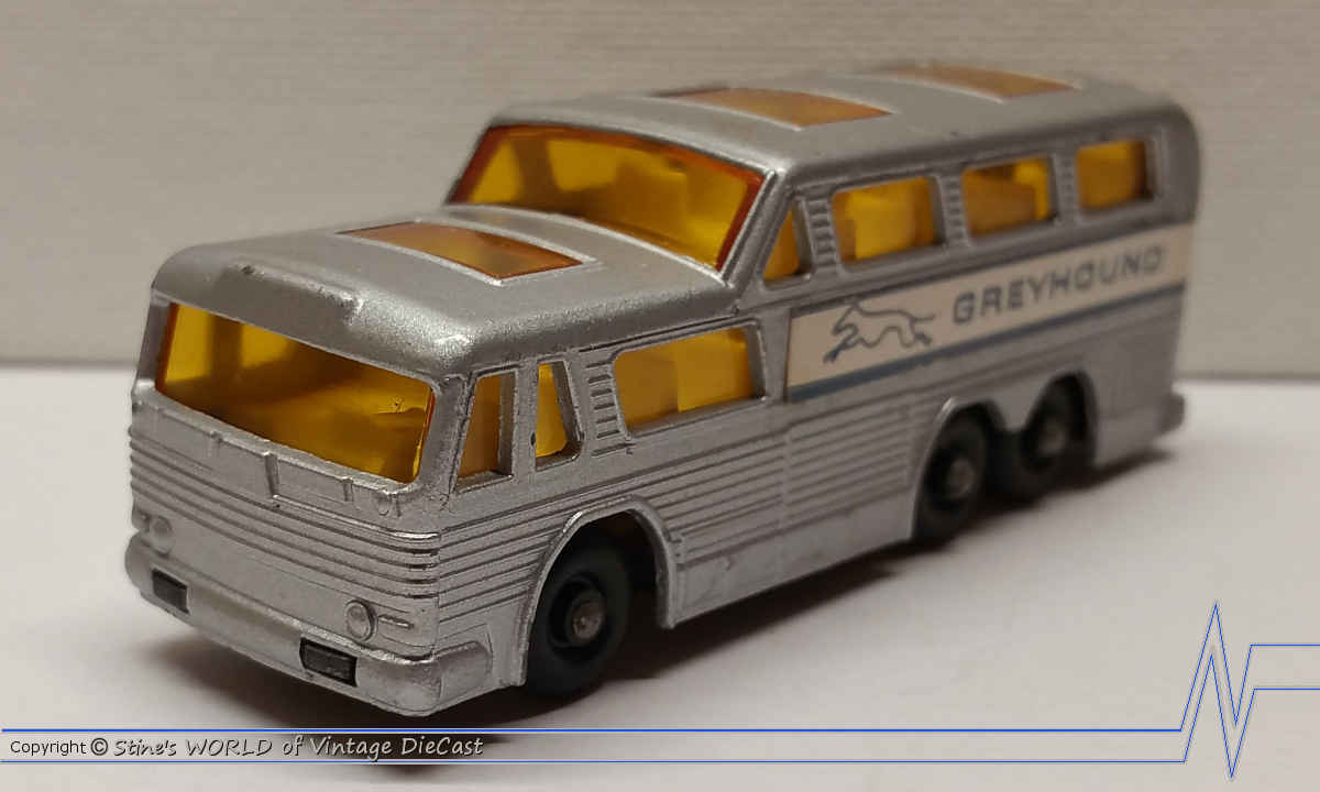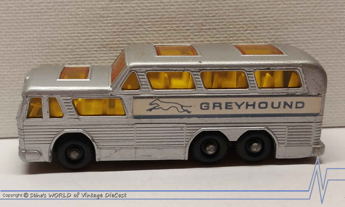 Moko Lesney Matchbox #66c Greyhound Bus Coach (1966) - Amber Windows