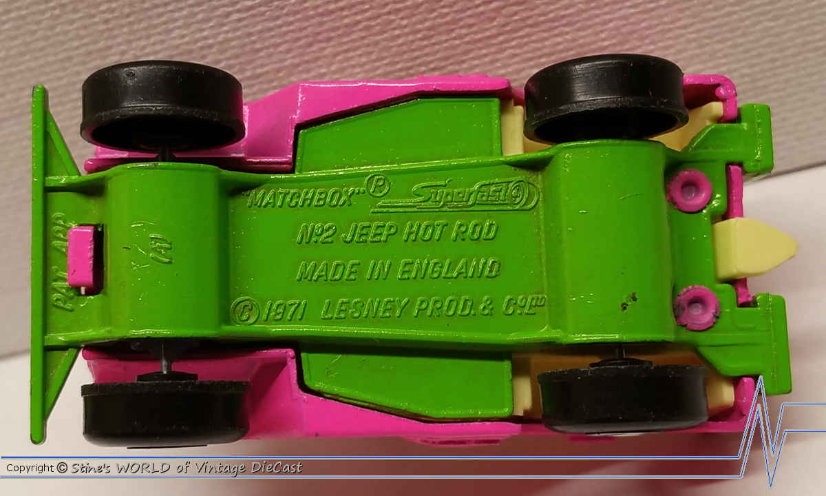 Matchbox Superfast #2E Jeep Hot Rod (1971) - Pink Body with Green Base