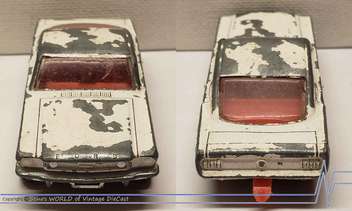 Baseplate Comparision for the #8E Transitional Model: Superfast Version with No Steering Switch (top)/ 1966 Regular Wheel Lesney Matchbox (bottom)