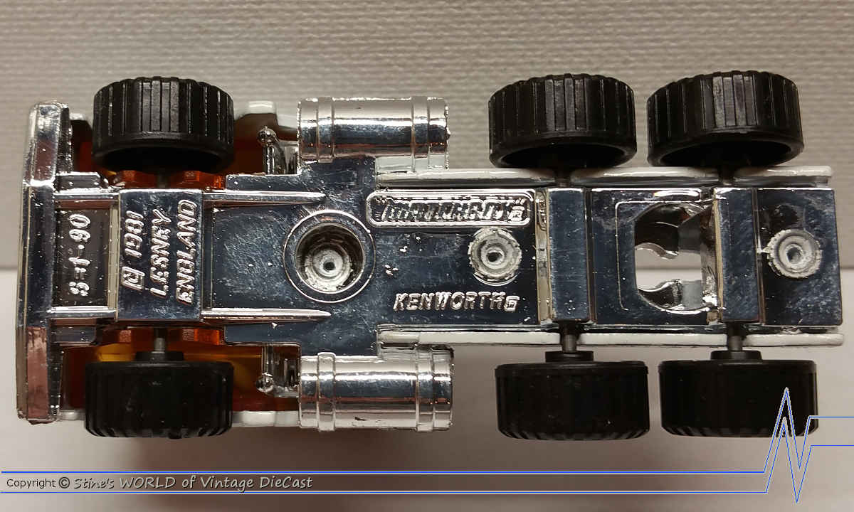 Matchbox Superfast #45E Kenworth Cabover Aerodyne (1981) - White with Orange Windows & Brown/Blue Stripes